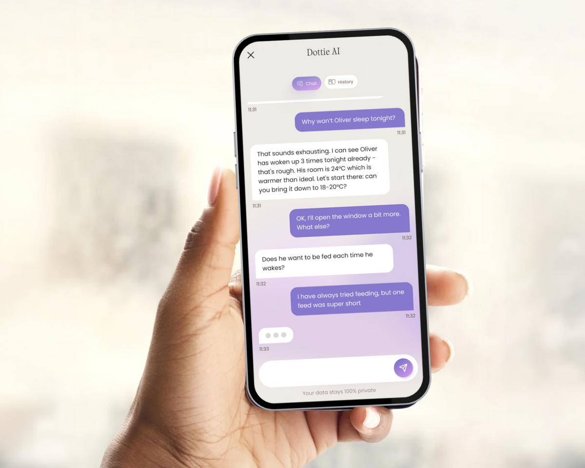 Your AI parenting companion. Ask Dottie anything. Get answers personalised to your child, not generic advice for 'most babies.